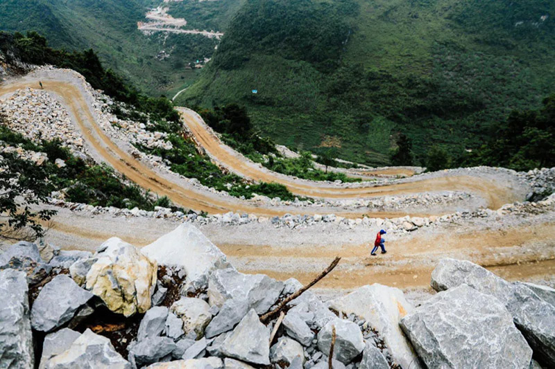 村民為了把山羊運到集市上售賣,一人背只羊,徒步下山。