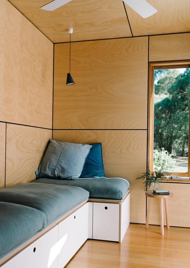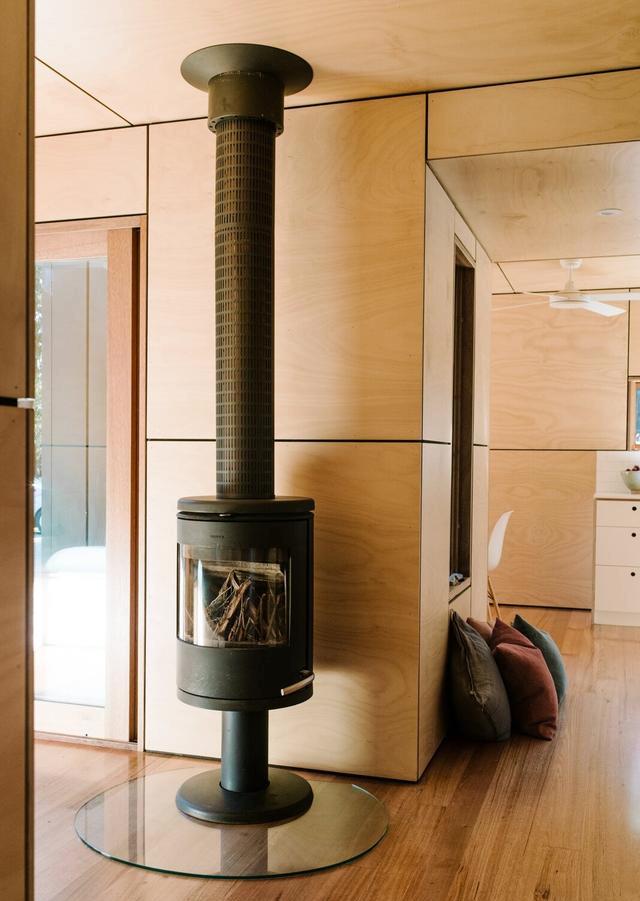 這對(duì)夫婦還想讓房子融入環(huán)境,選擇灰色的外部色調(diào),這樣就能融入周圍的灌木叢中。內(nèi)部,生態(tài)膠合板墻壁、天花板和塔斯馬尼亞橡木地板營(yíng)造出溫暖和紋理,與光滑的外部覆層形成對(duì)比。