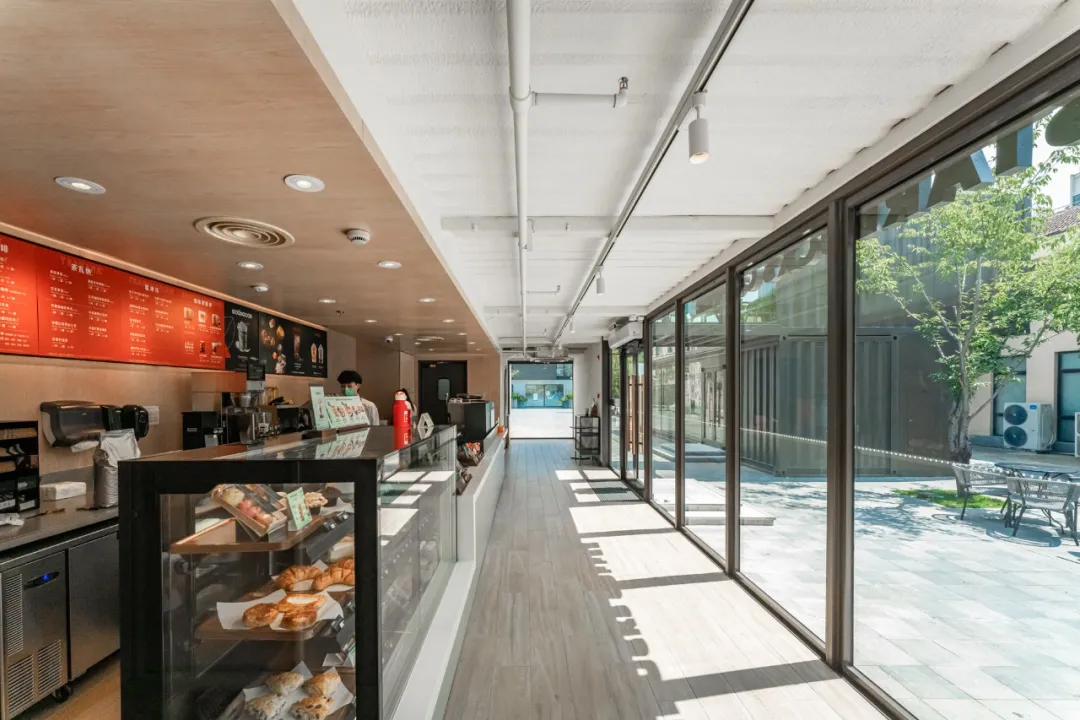 集裝箱的盡頭則是一處很適合開會辦公的小型會議室,墻上掛著歷史上第一家星巴克的照片,你可以一窺歷史與現(xiàn)代之間的文化交流,感受漫長歲月的變遷。除了室內(nèi)休息區(qū)和連廊還有兩個室外露臺,等天氣再涼爽一些坐在這里吹吹風(fēng),放下一切煩擾,靜靜地望著藍(lán)天白云,獨享這一刻的安逸與靜謐。