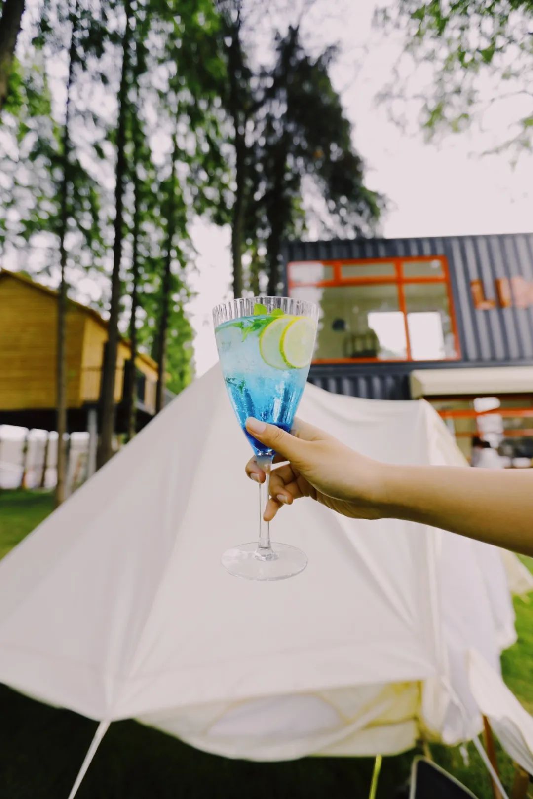 陽(yáng)光、草坪、咖啡、帳篷、氣泡水