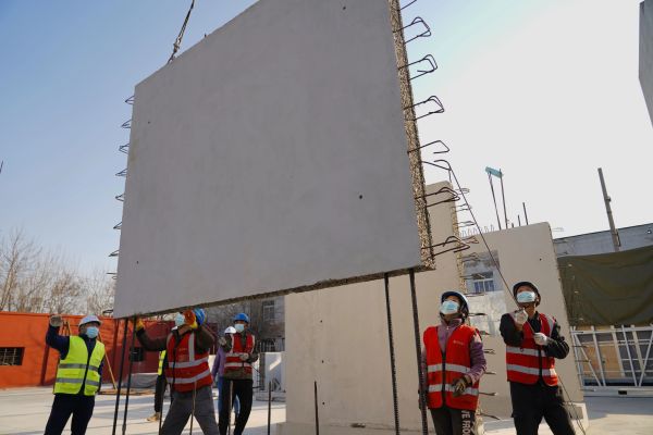 這套體系的研發(fā)中,雙方發(fā)揮各自優(yōu)勢通過產(chǎn)、學(xué)、研、用深度融合,實(shí)現(xiàn)了體系創(chuàng)新。新體系在混凝土構(gòu)件上預(yù)留好直徑10公分的方形或圓形的貫通構(gòu)件的金屬波紋管,這樣安裝時(shí)工人將直徑2公分左右的鋼筋插入10公分的孔洞遠(yuǎn)比插入2.5公分孔洞更加快速,平均的用時(shí)和人工均節(jié)省一半以上,加之構(gòu)件安裝完畢后再通過混凝土灌注波紋管進(jìn)行振搗壓實(shí)后密封,每層的施工周期可以從7天縮短到5天,綜合成本可以降低近20%~30%。