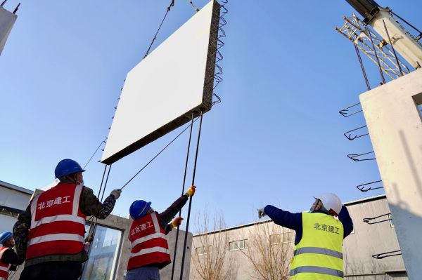 12月14日下午,位于大興區(qū)的裝配式構(gòu)件生產(chǎn)線迎來一批參觀的客人。展示區(qū)內(nèi),隨著吊車緩緩提起預(yù)制構(gòu)件,再穩(wěn)穩(wěn)地插入鋼筋內(nèi),一次裝配式構(gòu)件的安裝便完成了。