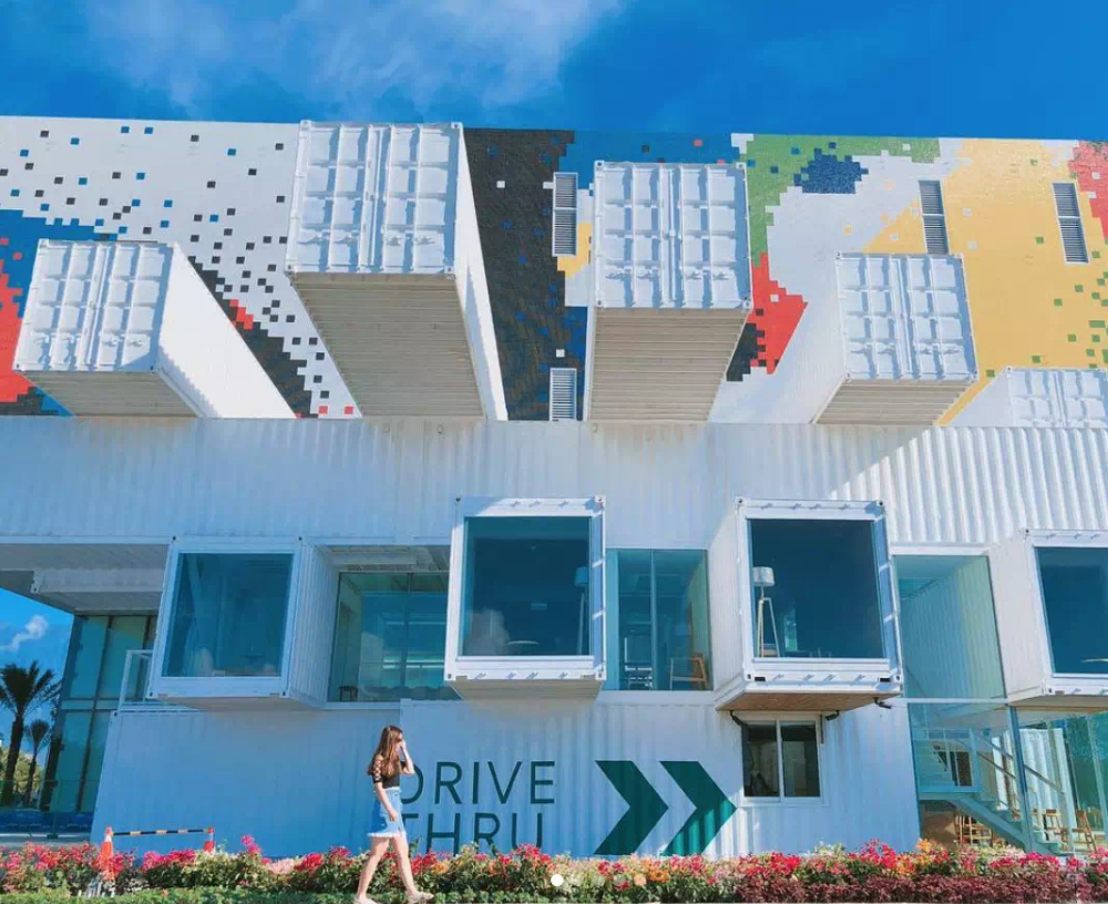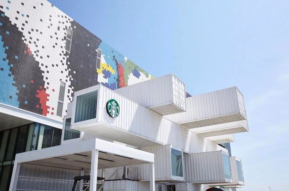位于花蓮的這所星巴克咖啡店使用一個個集裝箱交錯堆疊而成。